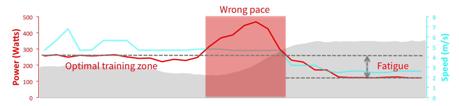 As I discussed in my earlier blog post, average and normalized power give a great insight into pacing on a cycling event. You’ll recall that normalized power approximates the effect of varying efforts better than average watts– and thus gives a clearer picture of how well you have been pacing and how much you have left in the tank. It’s unclear how normalized power, however, translates to running– or if it needs to be calculated differently in running. For instance, easy watts on an steep downhill section in cycling gives the body a real break whereas the same easy watts on a steep downhill in running can utterly trash the quads for later in the race. Only time will tell how these differences between running and cycling actually play out in practical advice for using a Stryd running power meter as a pacing tool. In short, pacing with a power meter on the bike is a rock-solid strategy, but I don’t think we know yet if the same holds true for running.